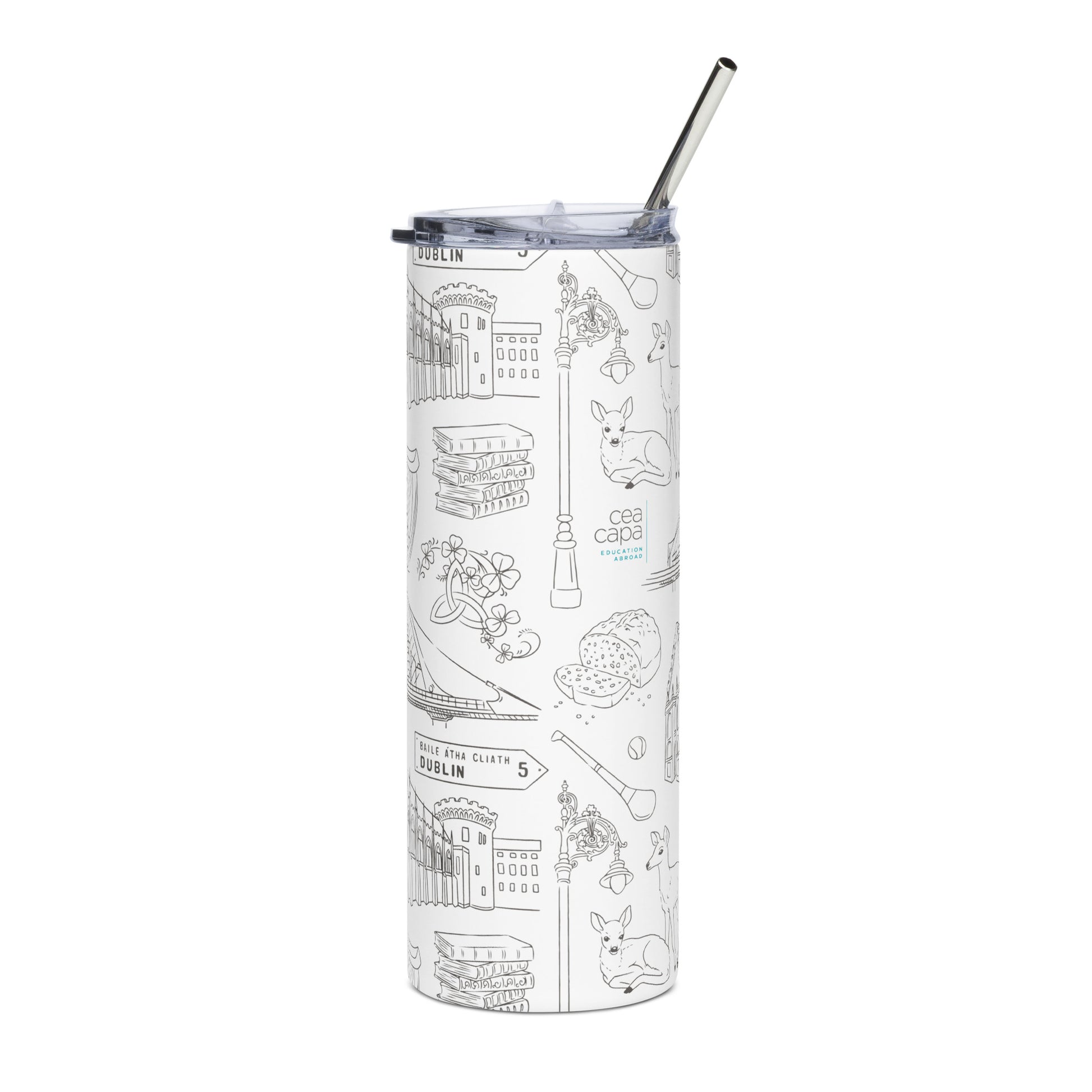 Enjoy hot or cold drinks on the go with this stainless steel tumbler! Stylish, functional, and a true homage to Dublin's allure, this tumbler is the ideal companion for travelers and a thoughtful gift for those who hold this city close to their hearts.