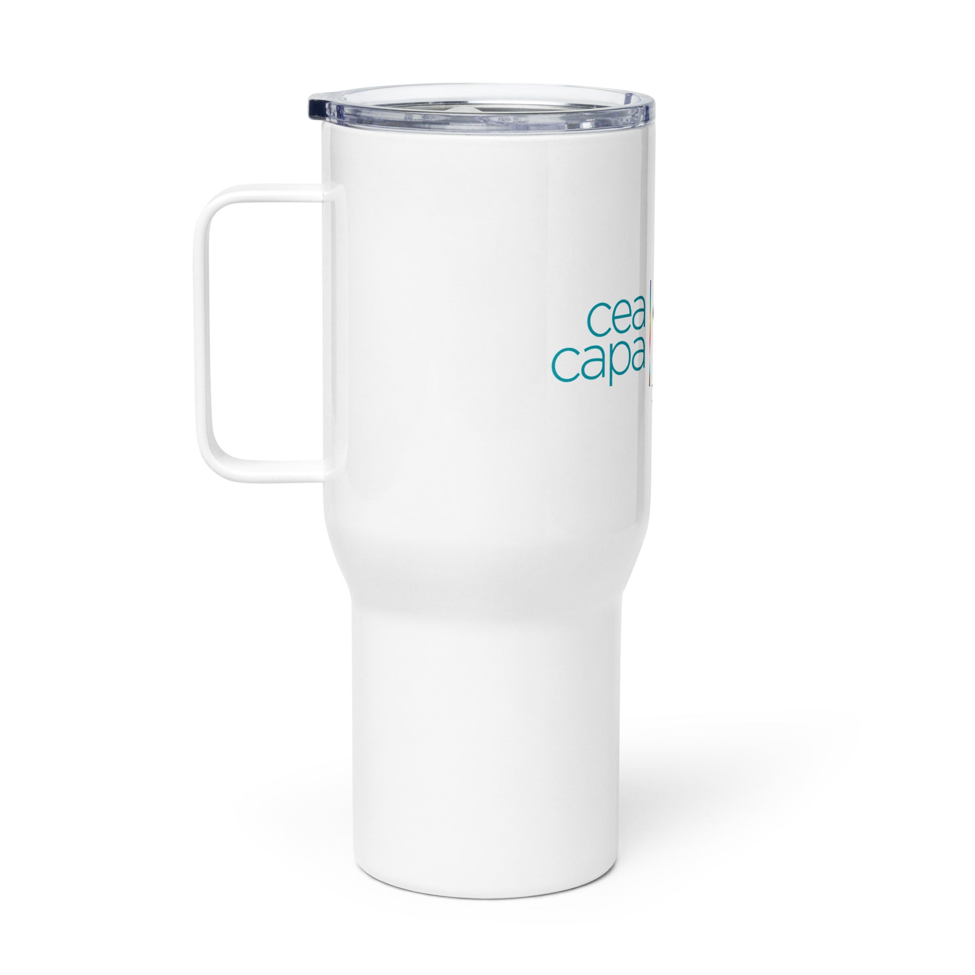 Sip in style with this trendy travel mug. Sleek and durable, you’ll love taking this mug wherever you go. It fits into most car cup holders and has a spill-proof plastic lid. Commute to class or go on new adventures—this travel mug will keep your beverage safe and at just the right temperature.