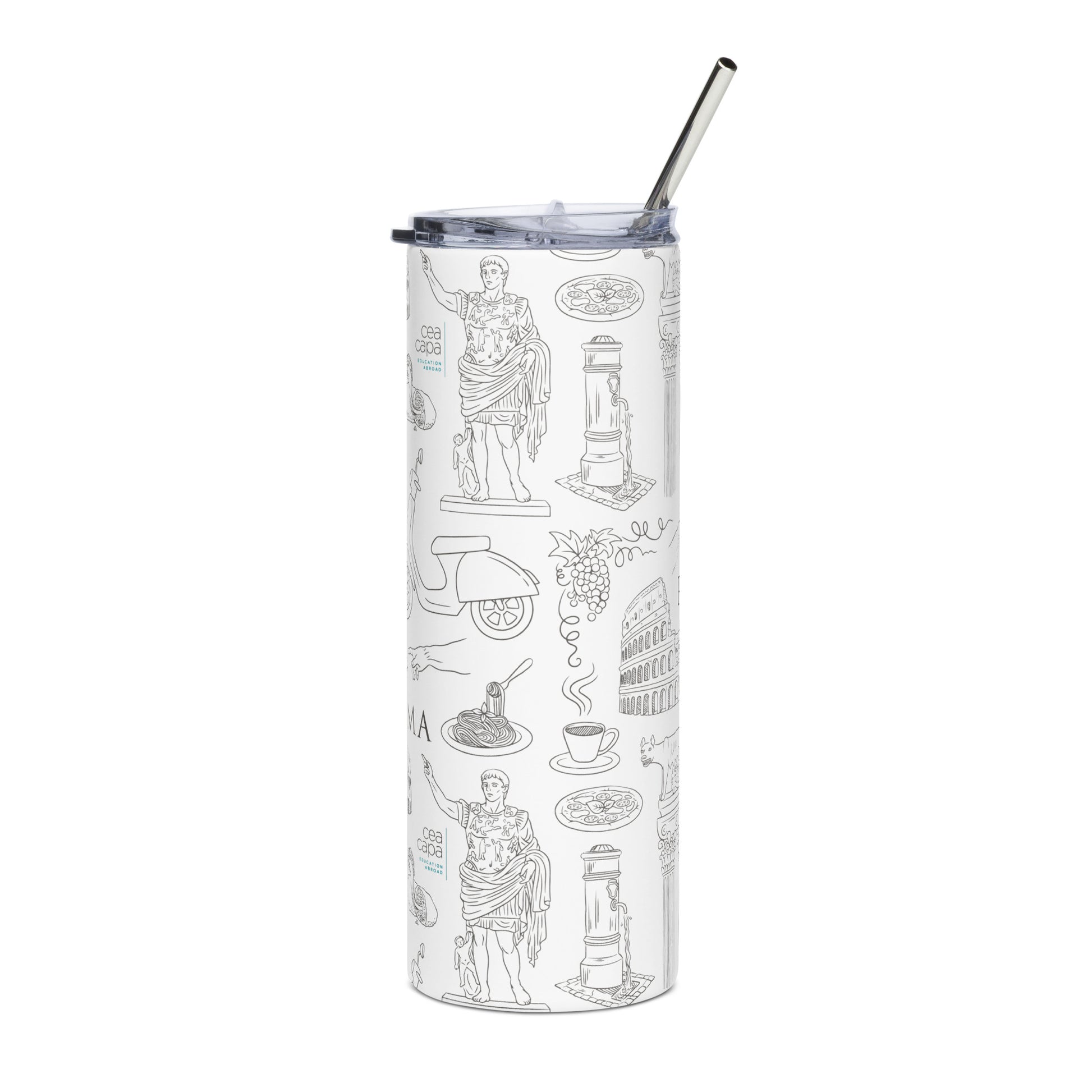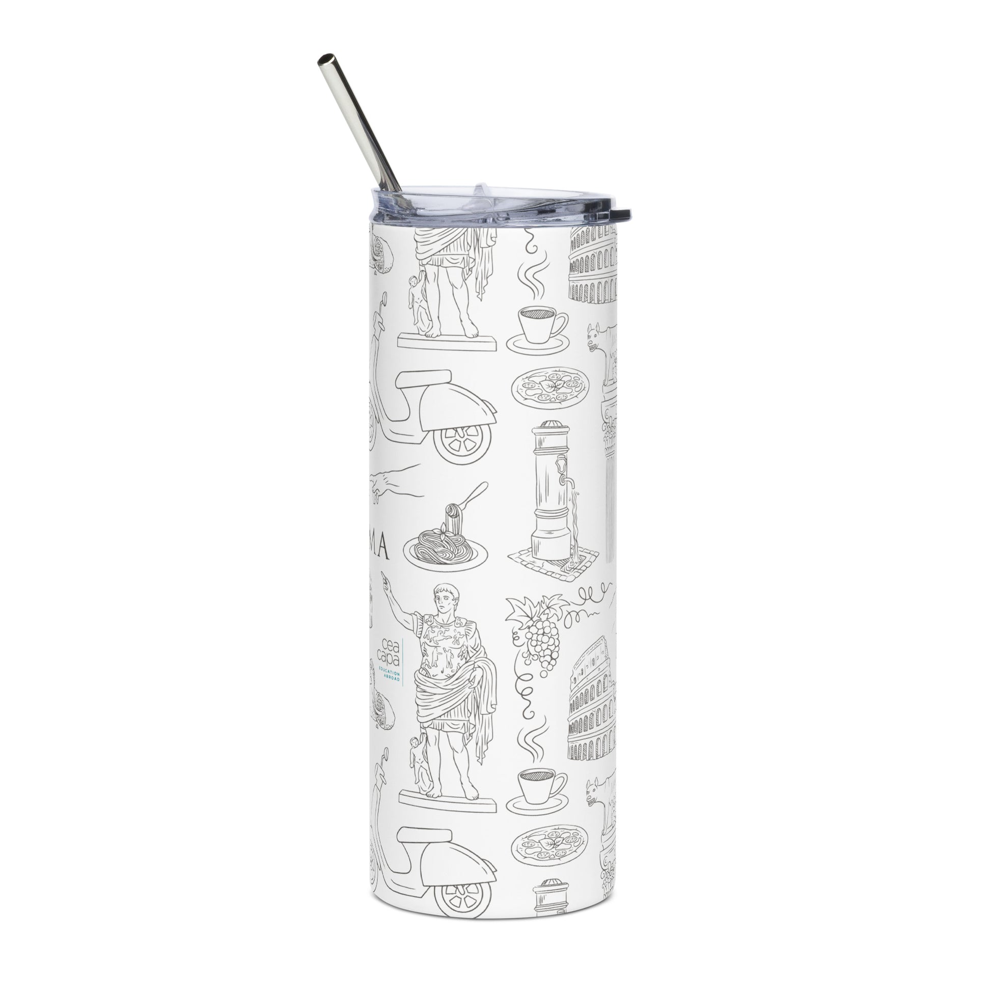 Enjoy hot or cold drinks on the go with this stainless steel tumbler! Stylish, functional, and a true homage to Rome's allure, this tumbler is the ideal companion for travelers and a thoughtful gift for those who hold this city close to their hearts.